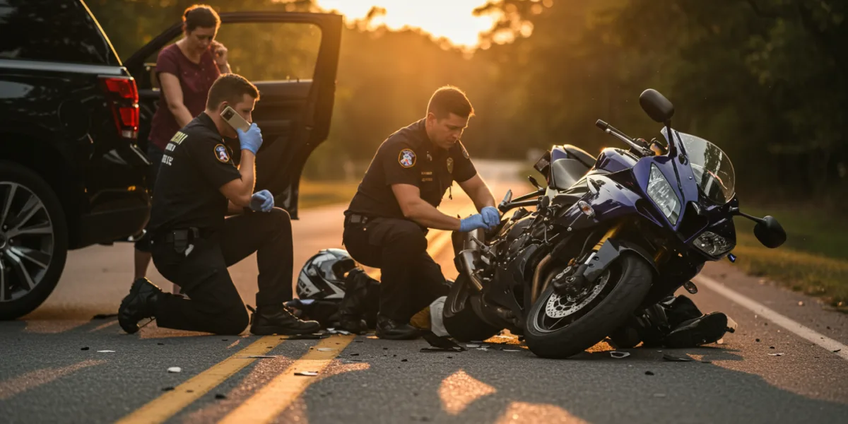 First, ensure your safety and the safety of others involved. Call 911 to report the accident and request medical assistance. Exchange information with the other driver(s) involved, including insurance details. Document the scene with photos and videos, if possible. Seek immediate medical attention, even if you feel fine, and contact an experienced motorcycle accident attorney.
